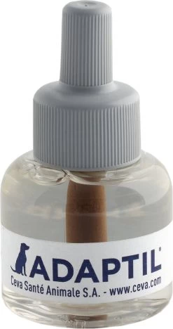 Navulling voor de Adaptil verdamper.Adaptil is een natuurlijke en praktische oplosssing tegen angst of stress bij honden. Denk aan moeilijke situaties als vuurwerk en alleen thuis blijven. Of aanpassen aan een nieuwe omgeving: adoptie, puppycursus, verhuizing, etc.