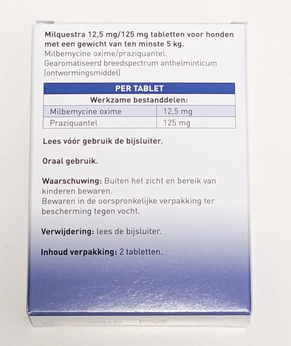 Breedspectrum ontwormingsmiddel voor honden vanaf 5kg op basis van Milbemycine oxime en Praziquantel.