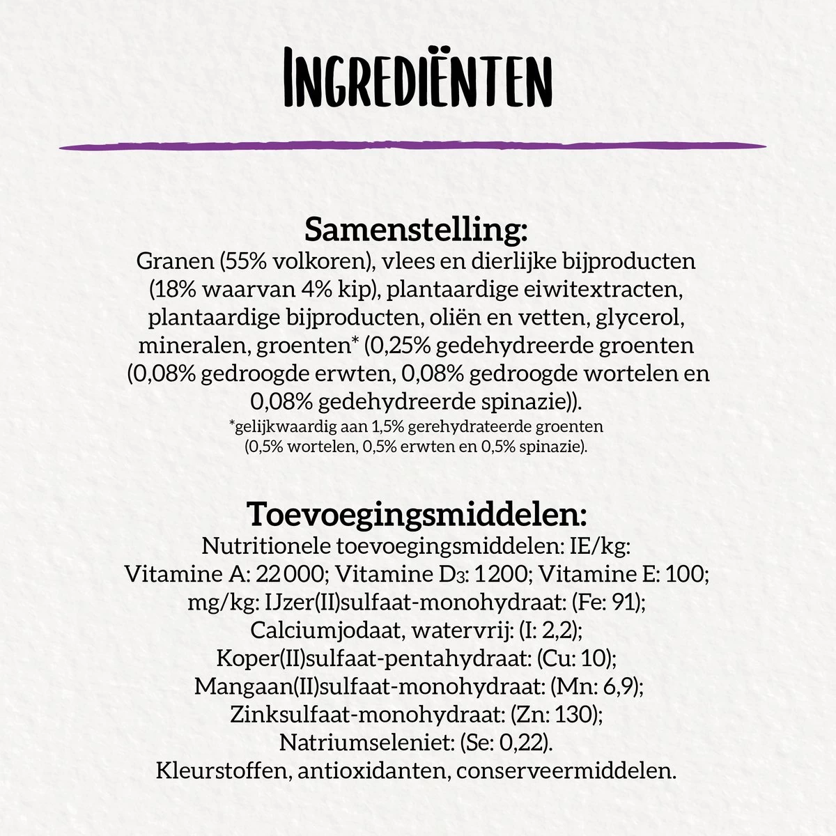Het is een zorgvuldig uitgebalanceerde maaltijd die jouw oudere hond helpt speels en actief te blijven. Het bevat een mix van knapperige brokjes en zachte♥ stukjes voor een smaak en textuur waar je hond dol op zal zijn.