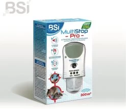 MultiStop Pro is een geavanceerde ultrasone ongedierteverjager die uw leefomgeving beschermt tegen ongewenste indringers zoals spinnen, insecten (muggen, mieren, kakkerlakken, zilvervisjes, pissebedden, mijten, bedwantsen,…), muizen en ratten, ziektekiemen in de lucht en slechte geurtjes. Daarvoor maakt het gebruik van 3 technologieën: ultrasone geluidsgolven, elektromagnetisme en luchtionisatie. Het toestel bevat een luidspreker die onhoorbare ultrasone geluidsgolven uitzendt en een sterke irritatie veroorzaakt bij het ongedierte wat hen verdrijft. Daarnaast geeft het elektromagnetische impulsen door aan de elektriciteitskabels in het huis via het stopcontact. Deze bescherming richt zich specifiek tegen ongedierte dat zich verschuilt in holtes zoals muren en leidingen en maakt hun omgeving ondraaglijk. De technologieën zijn onschadelijk voor mensen, katten, honden, vogels en vissen. Via ionisatie neutraliseert het toestel ook stofdeeltjes, ziekteverwekkende kiemen en slechte geurtjes in de lucht. U dient het toestel ten slotte enkel in het stopcontact te steken waarna het meteen werkt. Bereik toestel: 300 m²