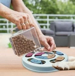 Niet alleen helpt het de intelligentie van uw hond te verhogen, het gaat ook nog eens verveling tegen. Door de knoppen opzij te kunnen schuiven wacht er een beloning en kunnen honden leren ze terwijl ze plezier maken. De hondenpuzzel beschikt over snack vakken en bewegende delen, die uw hond bezig kunnen houden om probleemoplossende vaardigheden te leren, maar ook om uw hond te laten werken voor zijn/haar voeding. Het is ideaal voor de dagelijkse bezigheid maar het voorkomt ook: verstikking, zwaarlijvigheid, winderigheid, overmatig eten en spijsverteringsstoornissen.