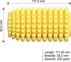 Het product is geproduceerd in de vorm van een maiskolf, de in zag-zag vorm verhoogde horizontale en verticale groeven maken het gebit van de hond schoon tijdens het spelen. Gekartelde groeven voor kiezenreiniging, horizontale en verticale reinigingsgleuven voor de snij- en hoektanden. Tandsteen en tandplak wordt verwijderd bij de hond op een speelse wijze. Dit resulteert in minder problemen met het gebit op latere leeftijd en direct minder geur uit de bek van de hond. Dit scheelt u als hond eigenaar veel tandheelkundige rekeningen in de toekomst. Er kan hondentandpasta worden aangebracht in de groeven van het product voor optimaal resultaat.
