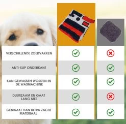 - Anti slip – Door de handige antislip aan de onderkant van de mat is het voor uw hond gemakkelijk om op een correcte manier te snuffelen en zijn eten te vinden!