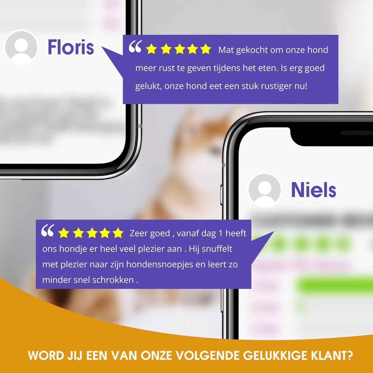 - Fit & Gezond – De hond schrokt niet meer zijn eten naar binnen, dit zorgt ervoor dat hij sneller een voldaan gevoel krijgt wat overgewicht voorkomt!