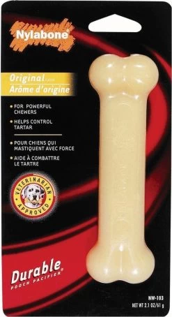 Het Nylabone kauwbot is vervaardigd uit duurzaam hoogwaardig nylon. Nylabones zijn goed gekeurd door dierenartsen om aan de kauwdrift van uw hond te voldoen.
