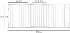 Dit hondenhek van PawHut is ontworpen om een veilige en comfortabele ruimte te creëren voor je dierbare harige vrienden. Het kan worden gebruikt als dierenbox, veiligheidshek, afscheiding voor de kachel en de kerstboom, en zelfs als scheidingswand. Dankzij het inklapbare design kan het hek gemakkelijk worden vervoerd en opgeborgen als het niet wordt gebruikt. Geef je huisdier een thuis met deze box! Eigenschappen: · Kan aan de muur worden gemonteerd met behulp van de meegeleverde accessoires · Kan worden gebruikt als kinderbox, veiligheidshek, afscherming van kerstboom, en kachel, of worden ingezet als scheidingswand, etc. · Het hek sluit automatisch als de openingshoek kleiner is dan 90° en blijft open als deze groter is dan 90° (het hek sluit niet als de hoek kleiner is dan 15°) · Dit veiligheidshek voor dieren kan in elke gewenste vorm worden gezet in een L-vorm, U-vorm, etc. · Trek de knop terug en til hem op om de deur te openen · Sterk metalen frame met gepoedercoat oppervlak, niet giftig, duurzaam, gaat jarenlang mee · Inklapbaar design voor eenvoudig opbergen en vervoeren · Geschikt voor kleine en middelgrote honden Technische gegevens: · Kleur: Wit · Materiaal: Metaal, kunststof · Afmetingen volledig uitgeklapt: 180 L x 3 B x 74,5 H cm · Afmetingen opgevouwen: 60 L x 7 B x 74,5 H cm · Afmetingen per paneel: 60 L x 3 B x 74,5 H cm · Afstand van de hekken: 5,8 cm · Aantal panelen: 3 · Omvang van de levering: 1 x Deurafscherming · Verzendbriefje: Geen verzending naar Nederlandse eilanden.
