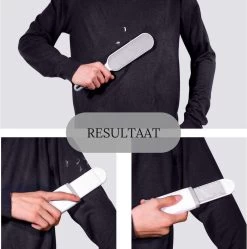 Doordat de borstel gemaakt is van een statisch materiaal plakken alle haren, pluisjes en andere stofjes van je kleding zo eraan vast. Maar de borstel zet niet de vezels van je stoffen kleding en meubels overeind, hierdoor blijft je kleding mooi en raakt niet beschadigd door het gebruik van de borstel.