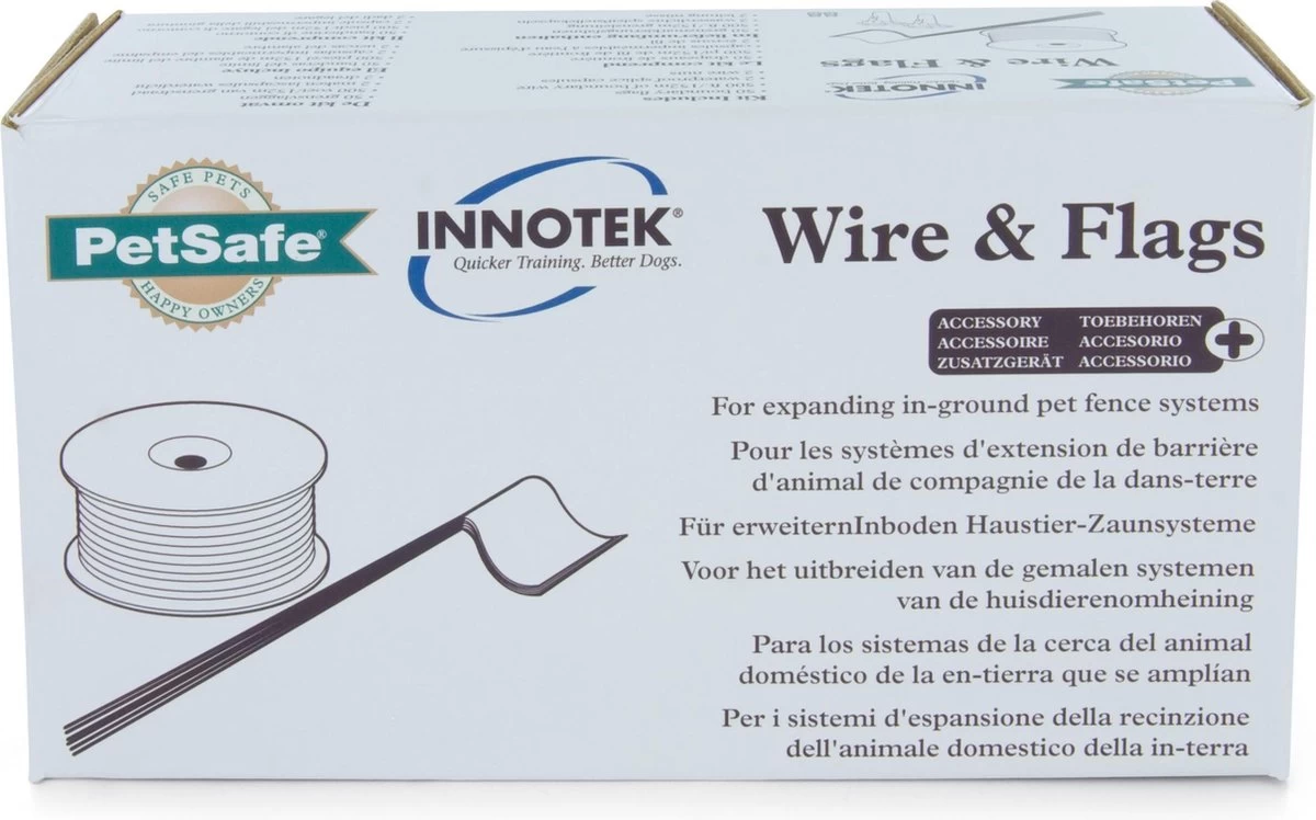 Uitbreiding voor ingegraven huisdier-omheiningsystemen. De draad heeft een lengte van 150 meter, wordt geleverd met 50 begrenzingvlaggen en 2 draadconnectors. Zo kun je de omheining zo groot maken als je zelf wil.