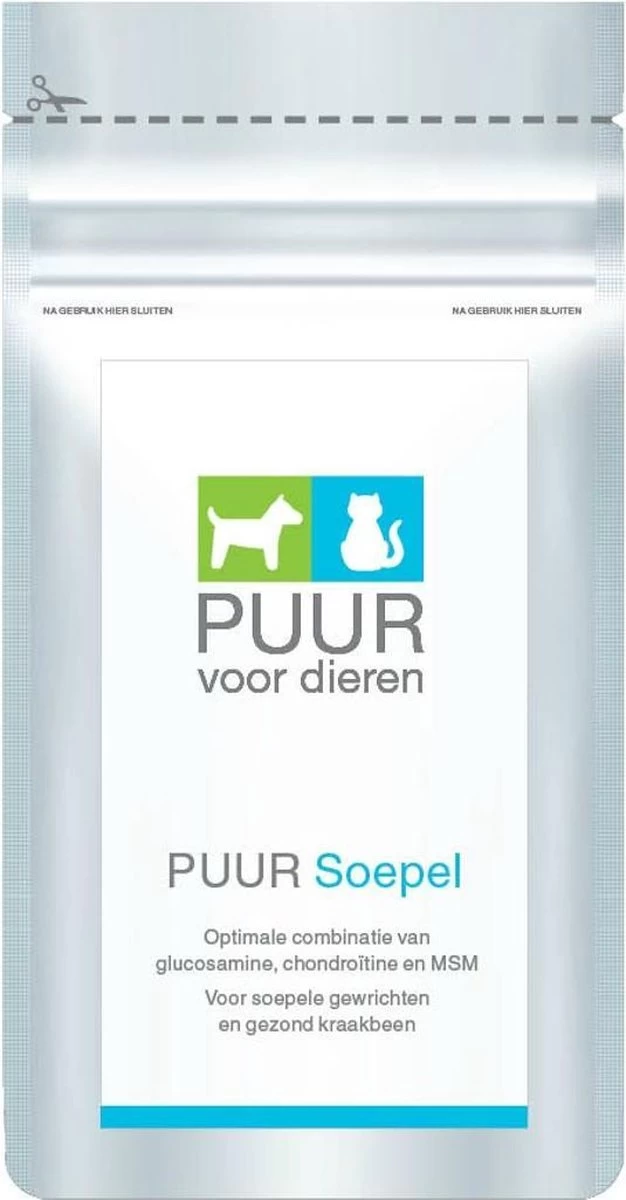 Gelukkig kun je gewrichten ondersteunen door op tijd te beginnen met de juiste voedingsstoffen. Gewrichtsproblemen worden meestal door het kraakbeen veroorzaakt. Als een hond ouder wordt of zwaarder kan het kraakbeen langzaam slijten, waardoor de gewrichten gaan schuren. Puur Soepel bevat de optimale combinatie van glucosamine, chondroïtine en MSM. Samen zorgen ze ervoor dat de enzymen die kraakbeen afbreken worden vernietigd en nieuw kraakbeen wordt aangemaakt.