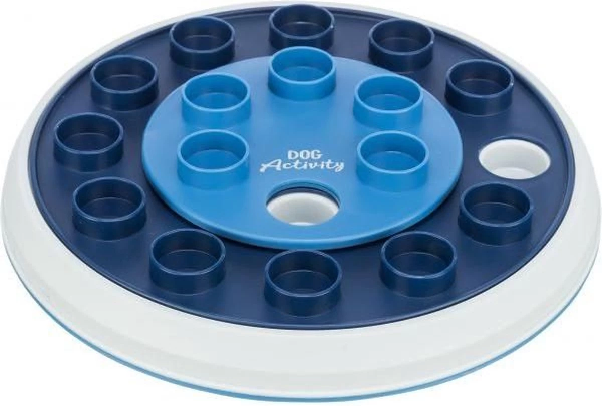 strongTrixie Dog Activity Strategiespel Twister Wit / Blauw 28 x 28 cm/strongbr /Het Trixie Dog Activty Strategiespel Twister Wit / Blauw 28 x 28 cm is een uitdagend intelligentiespel voor de hond, uit twee geperforeerde platen die los van elkaar bewogen moeten worden om bij de beloning te komen. Daag je hond mentaal uit om zijn beloning te verkrijgen met deze Trixie Twister! Dit bordspel bestaat uit twee platen met gaten, die los van elkaar bewegen. Wanneer het jouw hond lukt om twee gaten boven elkaar te krijgen, kan hij zijn beloning uit het gat tevoorschijn vissen. Een mentale uitdaging met een beloning, dat gaat zeker verveling tegen! Dit spel is slipvast door de rubberen ring, wat schuiven tijdens het spelen voorkomt, en voorzien van een handleiding voor training om je op weg te helpen. br /br /- Intelligentiespel voor de hondbr /- Bordspel met twee geperforeerde, draaiende pratenbr /- Twee gaten boven elkaar geeft de hond toegang tot zijn beloningbr /- Daagt men