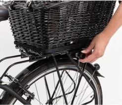 Trixie Fietsmand met Draadkoepel Achterop Zwart 35x49x55 cm• Van wilgentakken • Met gegalvaniseerd en geplastificeerd gaas • Voor vervoer van het dier op de bagagedrager • Kussen met velours-overtrek, grijs • Kussen: handwas • Kleur: zwart Kleur: zwartAfmetingen: 35x49x55 cmMateriaal: wilgentakken