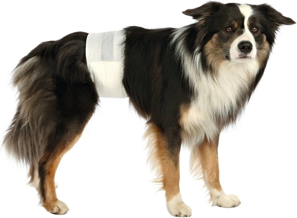 Deze hondenluiers van Trixie zijn ideaal voor eenmalig gebruik bij reuen. De luiers gemaakt in de vorm van een buikband en laten de achterzijde van de hond dus vrij. Ze zijn sterk absorberend en gaan lekken tegen. Door de elastische band en de klittenbandsluitingen zijn ze goed vast te maken. De luiers zijn wegwerpartikelen en na gebruik dus simpelweg te vervangen door een nieuwe.