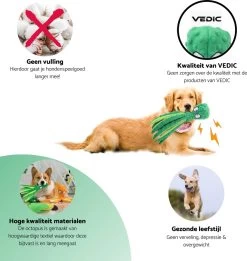 Verveeld je hond zich vaak? Of wil je hem gewoon extra speelplezier geven? Met deze piepende octopus knuffel van VEDIC® gaat je hond gegarandeerd speelplezier beleven! Doordat er een pieper in de knuffel zit trek je gemakkelijk de aandacht van je hond. Ook het knisperende geluid van de tentakels maakt je hond nieuwsgierig!