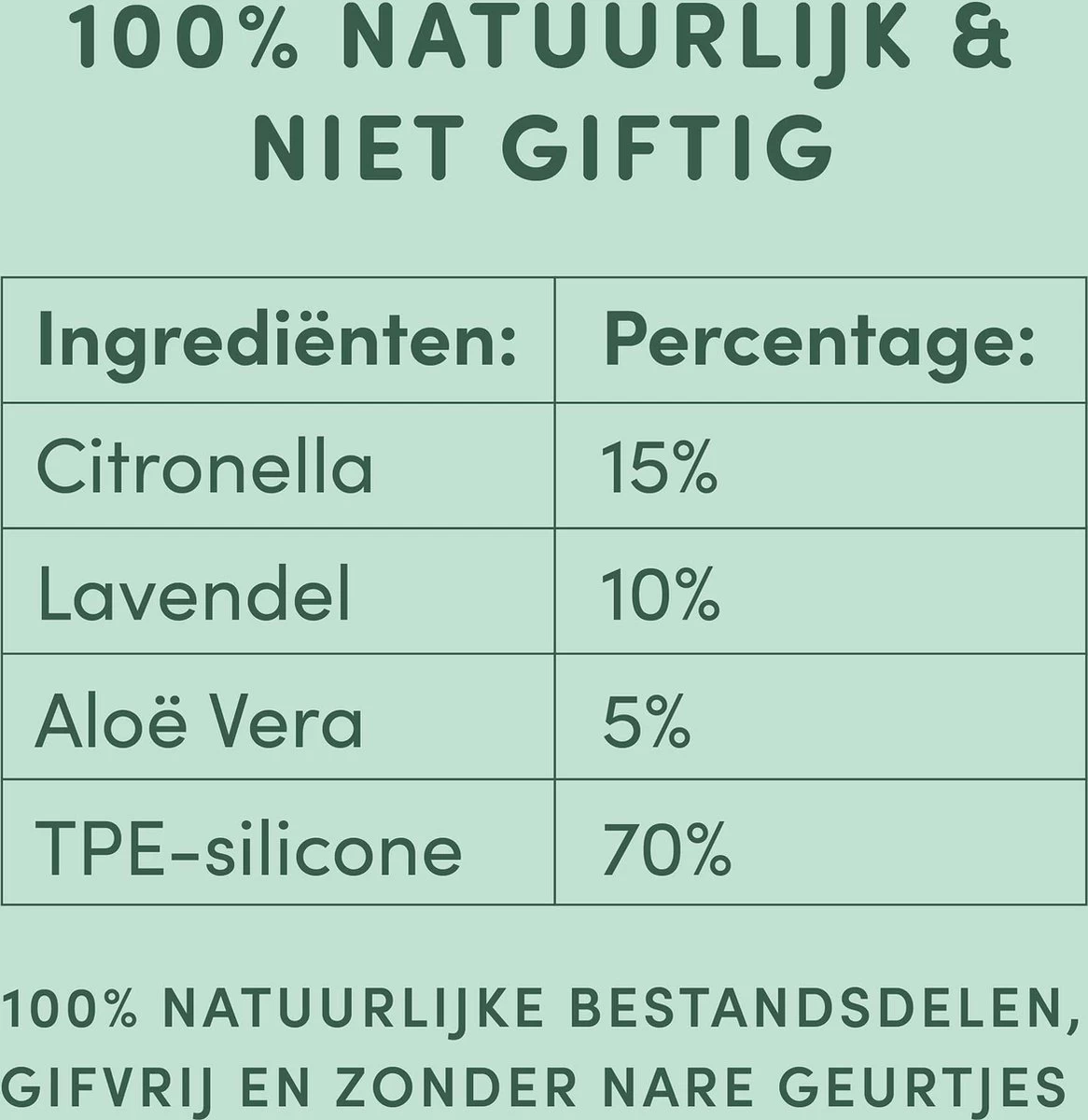 Alleen geschikt voor uitwendig gebruik. Buiten het bereik van kinderen bewaren. Na het plaatsen van de band de handen grondig wassen. Niet gebruiken als speeltje. Product niet consumeren. Niet toepasbaar op zieke of jonge dieren jonger dan 12 weken of onder de 1 kg gewicht. De vacht van het dier regelmatig borstelen. Neem het product alleen in gebruik onder menselijk toezicht. Wij adviseren het product te gebruiken wanneer u veel met uw huisdier buiten bent aan het wandelen/spelen. Hier heeft het product het meeste effect. De band bevat