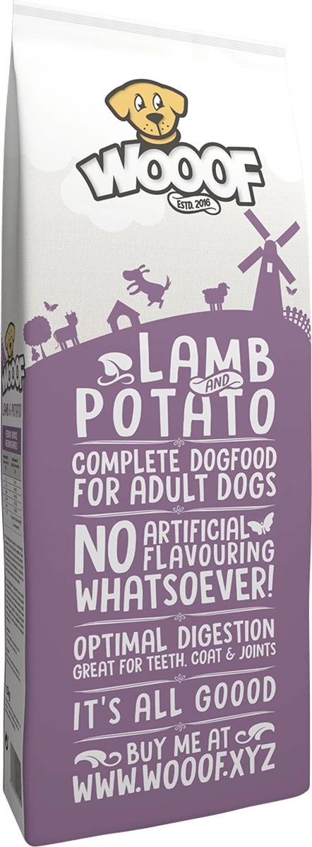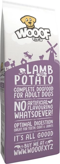 WOOOF Lam & Aardappel 18KG is een zeer compleet en natuurlijk 100% graanvrij hypoallergeen hondenvoer voor alle honden.